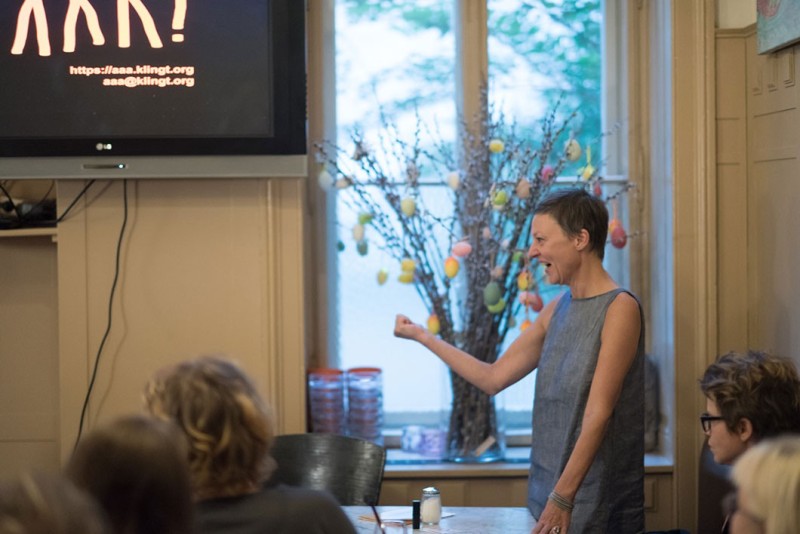Ein Video der Schweizer Künstlerin Pipilotti Rist zeigt, wie sie mit einer Blume eine Autoscheibe einschlägt. Eine Polizistin geht vorbei, salutiert freundlich. Das ist die Form von Aktionismus, an die AAA!, die Anonymen Älteren Aktionistinnen, denken, wenn sie ihre Interventionen planen: wirksam im Kleinen, machbar ganz alleine, witzig im Detail und effektiv im Resultat. Mit der Produktion kurzer Lehr- und Erklärvideos bringt die Gruppe AAA! Schwung in die Debatte, wie Frauen über vierzig im Alleingang politisch handeln können.