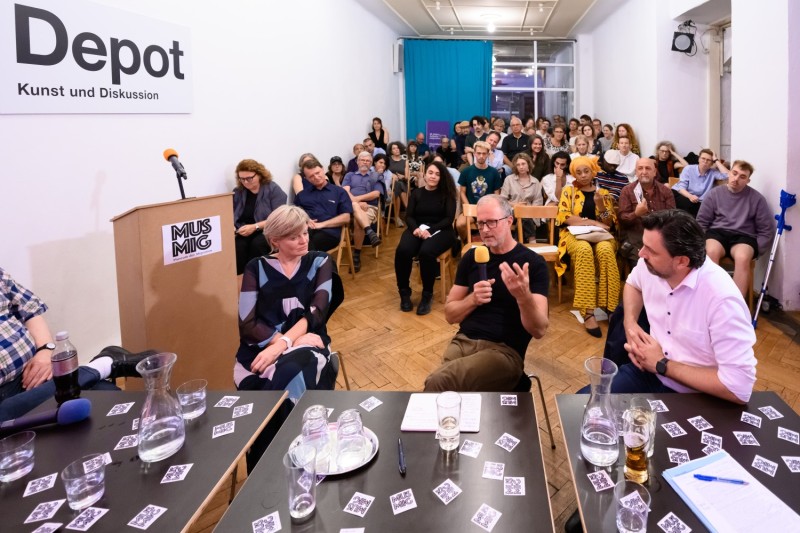 Das Museum der Migration (MUSMIG) wird am 16.09.2023 im Rahmen der WIENWOCHE in der Aula der Akademie der bildenden Künste Wien zum Leben erweckt. Begleitend dazu wird mit Mitarbeiter*innen zahlreicher Museen Wiens die Frage nach einem fehlenden realen Museum der Migration debattiert und das Verhältnis zu Themen wie Exil, Flucht, Asyl, Zwangs- und Gastarbeit in den bestehenden großen Häusern ausgelotet. Rassistische Ausschlussmechanismen sind mittlerweile für Museen und ihr Publikum zu einer zentralen Frage geworden, aber gibt es auch so etwas wie einen Antirassismus der Museen?