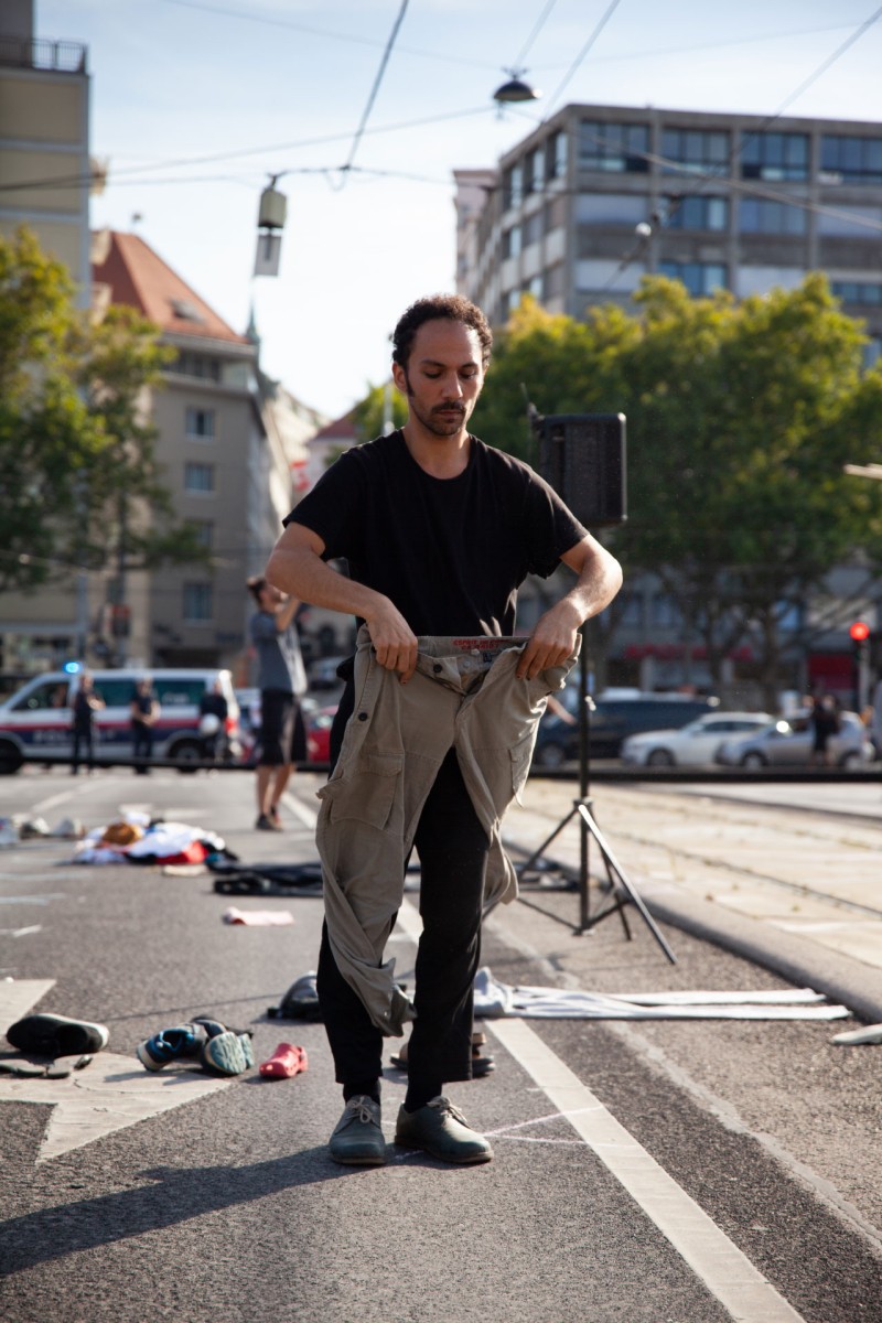 Iraqi Autumn agiert an der Schnittstelle von Kunst und Aktivismus und beschäftigt sich mit Fragen kollektiver und persönlicher Identität im Kontext von Flucht- und Migrationserfahrungen sowie transnationalen Biographien. Zentrales Thema ihrer Arbeiten ist der öffentliche Raum als Verhandlungsort für medial unsichtbar gemachte Kämpfe. Wie wird öffentlicher Raum zurückerobert? Wie schaffen wir einen Diskurs? Wie werden Privilegien definiert? Sind sie universell? Wann gilt man als privilegiert und wann werden Privilegien ein Motiv zur Flucht?