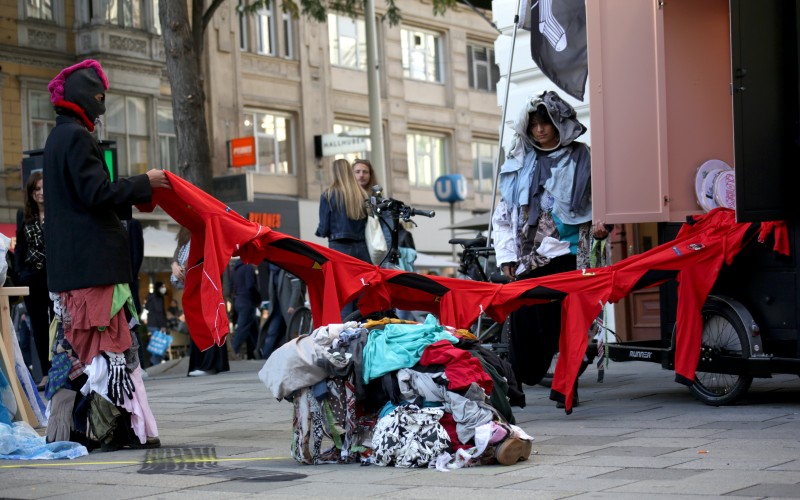 Gemeinsam mit den Mitarbeiter:innen des CARLA Recycling Centers werden wir in Säcken voll von Wiens ausrangierter Bekleidung wühlen, um einen Einblick in die Textilabfallströme der Stadt zu bekommen. Vom Kleidercontainer über die Sortieranlage bis hin zu den CARLA Second-Hand-Läden werden jede Woche rund 50 Tonnen Kleidung aussortiert. In der Tat eine schwere Arbeit!