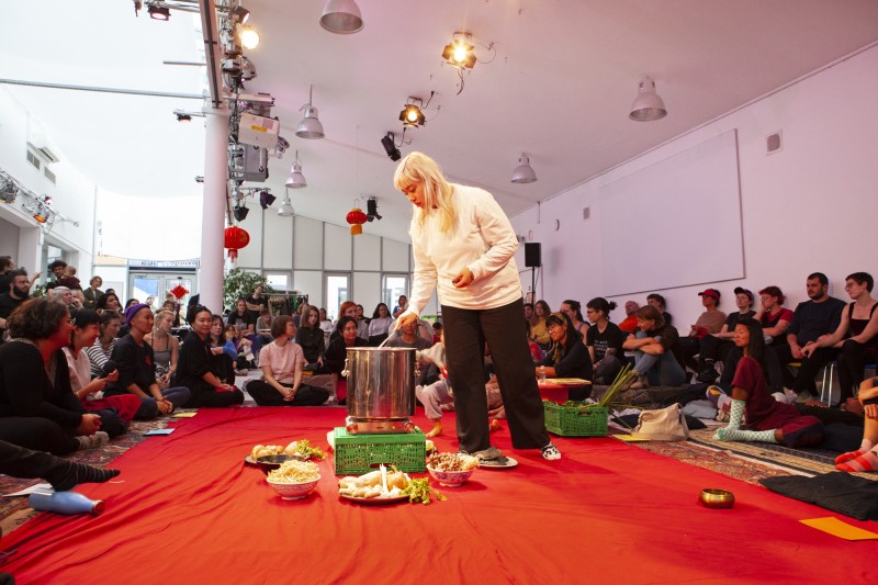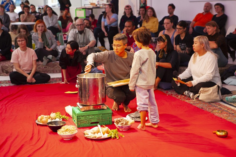 Das Essen war schon immer ein heiliger Ort der Verwandtschaft, des Trostes, der Fürsorge und der Zärtlichkeit. Lasst uns in der Umarmung eines gemeinsamen Mahls zusammenkommen, das unseren Geist beflügelt und unsere kollektive Existenz nährt. Gemeinsam werden wir einen Topf mit vertrauten Empfindungen und essbaren Erinnerungen brauen - eine Verkörperung unserer miteinander verflochtenen Vergangenheit, unseres gegenwärtigen Pulses und unserer Hoffnungen. Am Ende der Sitzung sind alle eingeladen, eine warme Mahlzeit miteinander zu teilen.