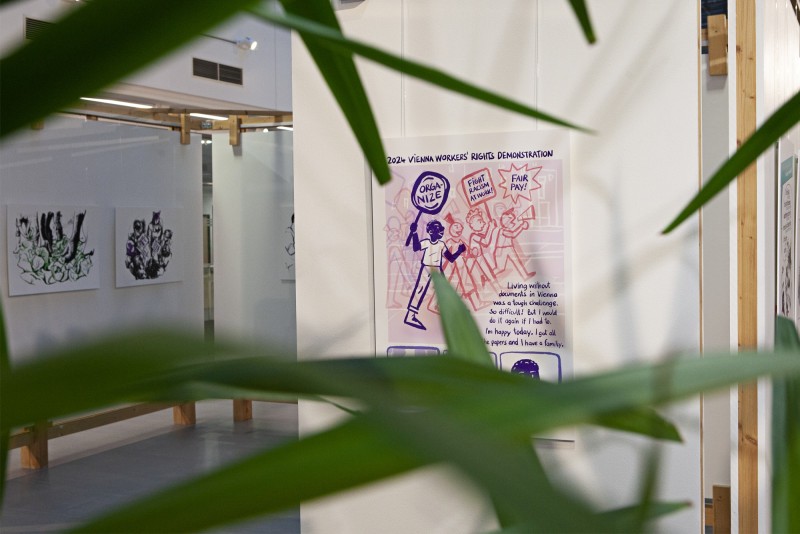 To mark its 10th anniversary, the UNDOK drop-in center presents a comic exhibition at the house of the Austrian Trade Union Federation (ÖGB) in Vienna’s 2nd district. The exhibition brings together contributions from various artists who address the topic of undocumented work in the form of illustrations, comics and graphics for UNDOK.