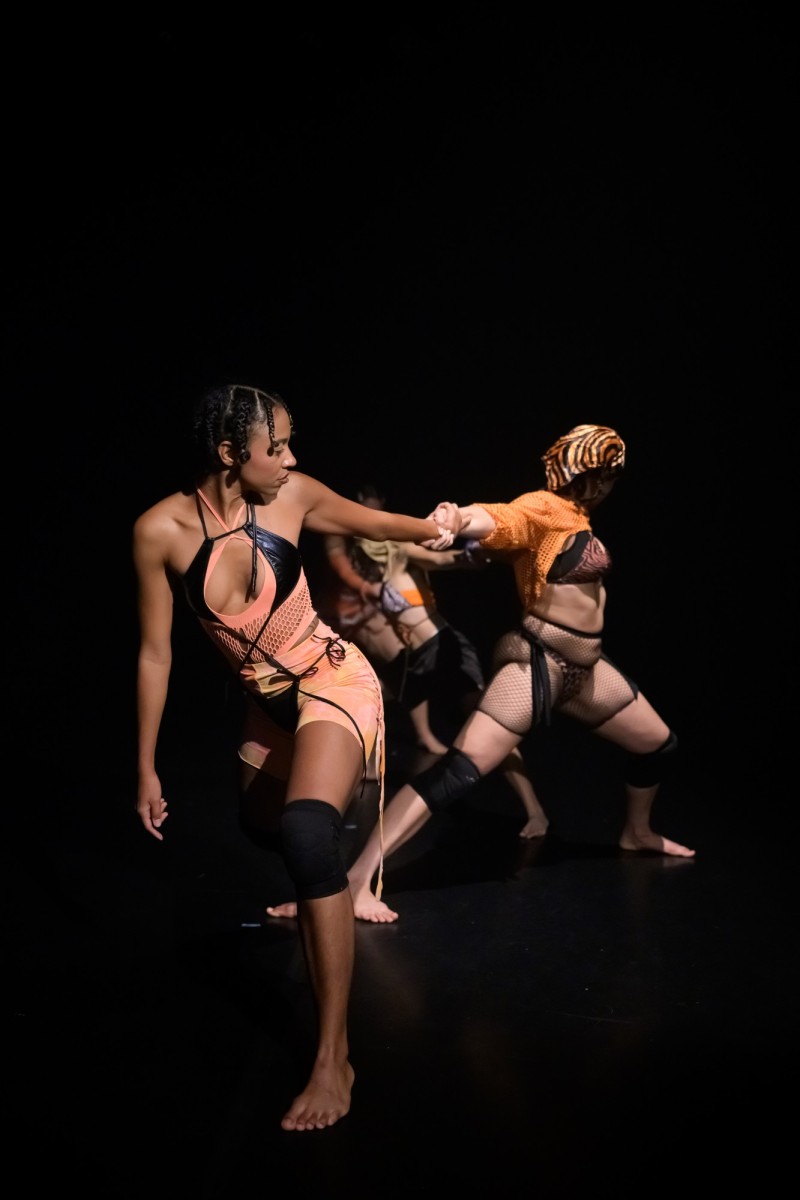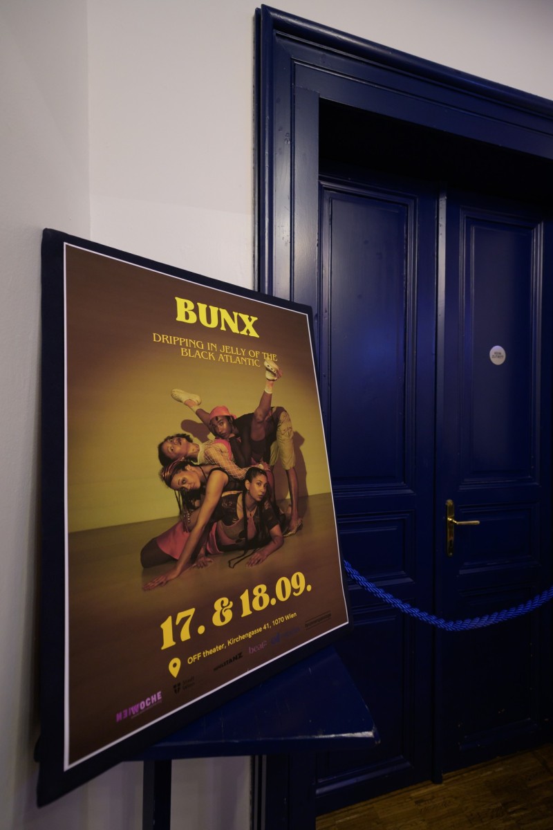 BUNX ist eine Tanzperformance, die in ihrer Rohheit und Verletzlichkeit ein verkörpertes Manifest befreiter Schwarzer und brauner FLINTA*-Körper symbolisiert. Wagemutig und fürsorglich kreieren Andrea Vezga Acevedo, Iris Omari Ansong, mirabella paidamwoyo* dziruni und Yours Izundu einen Raum, der Objektifizierungen und normative Blicke abschmettert. Im Pendel zwischen Club- und zeremonieller Atmosphäre fordern sie ihre sinnlichen und sexuellen Körper ein.