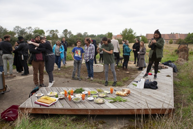of situated artistic experience, we are presented with different relational tactics of the inside and outside of this space, which in turn invites us to look at its micro- parts but also at a macro-campus of geo-aesthetics of landscape, future work, unconventional sites for planting and the links between soil, matter, bad herbs, bugs and human labour.