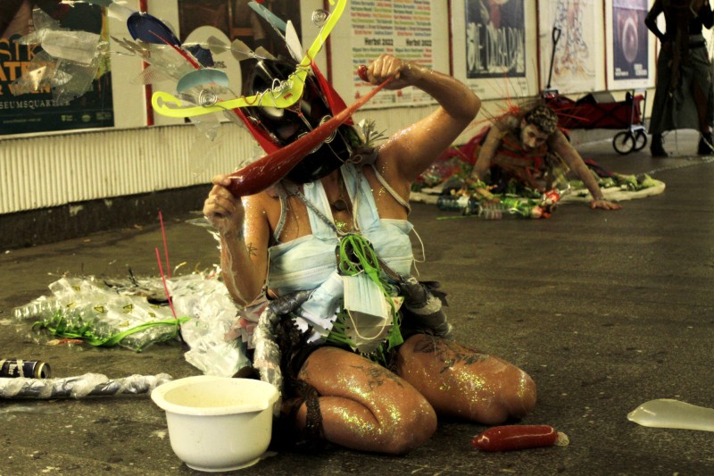 Peering through a window into a dystopian scenario where all resources have already been consumed and devastated by humanity, where nature as a source of life is tired and furious about the plunder, amid mountains of waste and poisonous plants unfit for human consumption, we see how a group of humans, led by a toxic king who has taken over the last plant that produces oxygen, find themselves at a last supper, the last inventory, and the last harvest.