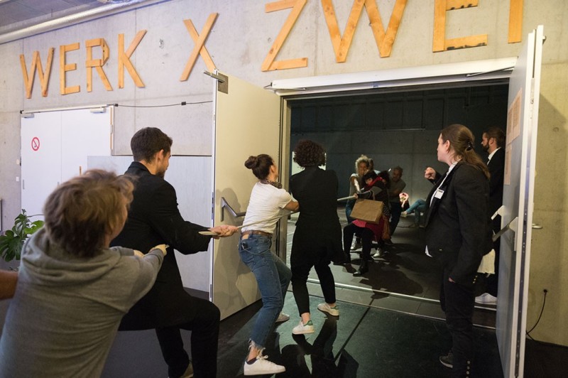 „Es ist das größte Theater der Welt”. Der künstlerische Forschungsprozess, bestehend aus gemeinsamer Textlektüre, Erfahrungsaustausch und der Aneignung performativer Methoden, kulminiert in einer theaterförmigen Installation. Die Zuschauer_innen werden nicht nur eingeladen zu schauen, sondern die Ergebnisse dieser performativen Studie aus ihren eigenen Perspektiven und Positionen in Frage zu stellen, zu bereichern und fortzuschreiben.