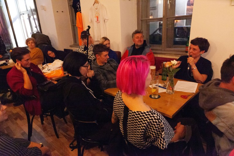 Weiters: künstlerische Arbeiten von Iris Kopera, Raumintervention von Walter Ego, Life Merch von Magdalena Fischer sowie Wandzeitung aus dem Crip Magazine Archiv.