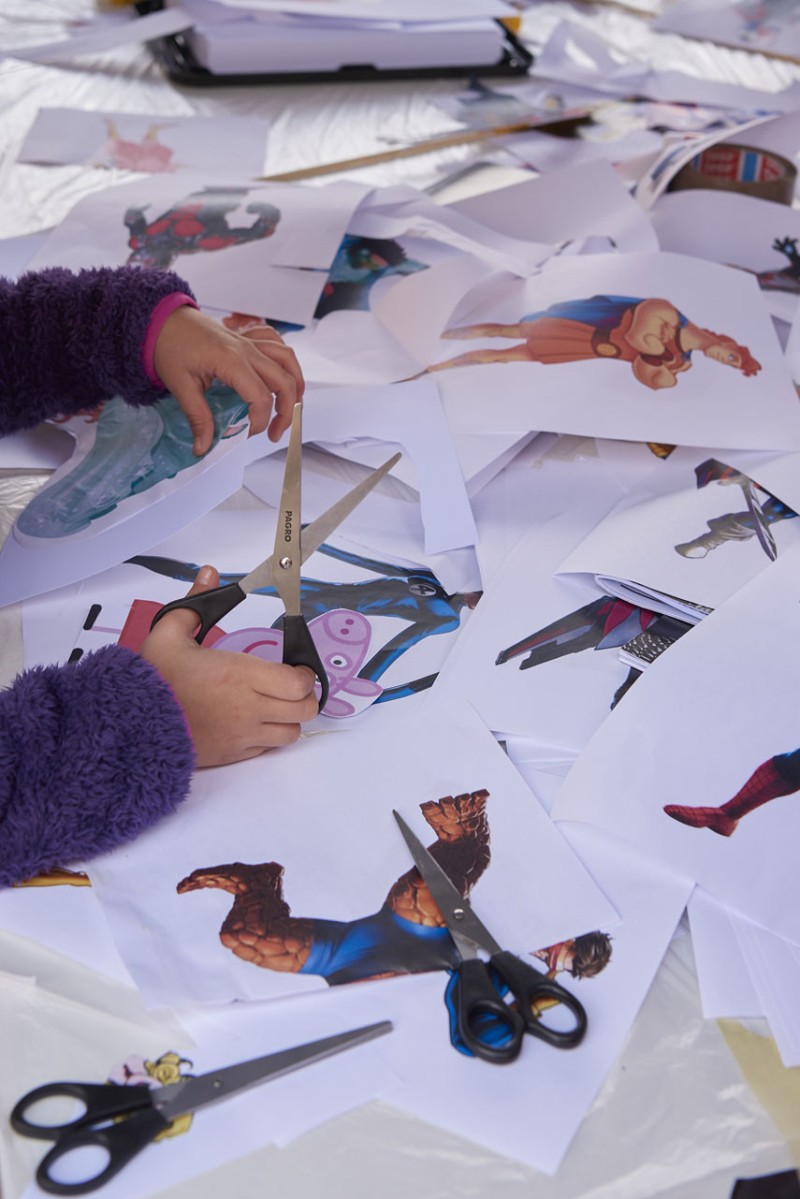 „Das ist für Jungs und das ist für Mädchen“ – soziale  Regelsysteme wie diese sind hartnäckig und wirken sich auf unser Verhalten und das unserer Kinder aus. Strukturelle Einschränkungen in der Auswahl von Spielzeug, Farben, Spielen, Hobbies, Kleidung oder Medien beeinflussen die Entscheidungen und Ansichten unserer Kinder und somit von uns allen. Der Workshop The Anti-Objects ermöglicht es Kindern, ihre Identität zu erkunden und sozial vorgegebene Werte und Grenzen in Frage zu stellen. Gemeinsam werden stereotype Darstellungsformen aufgebrochen und somit die individuellen Interessen und Ausdrucksformen des Kindes in den Mittelpunkt gestellt. Die physische Rekonstruktion von Superheld*innen-Figuren gibt Kindern die Möglichkeit, spielerisch genderspezifische Elemente aufzudecken und den Figuren eigengestaltete Fähigkeiten und Eigenschaften zu verleihen. Die Kinder können somit ihre ganz persönliche Superheld*in kreieren.