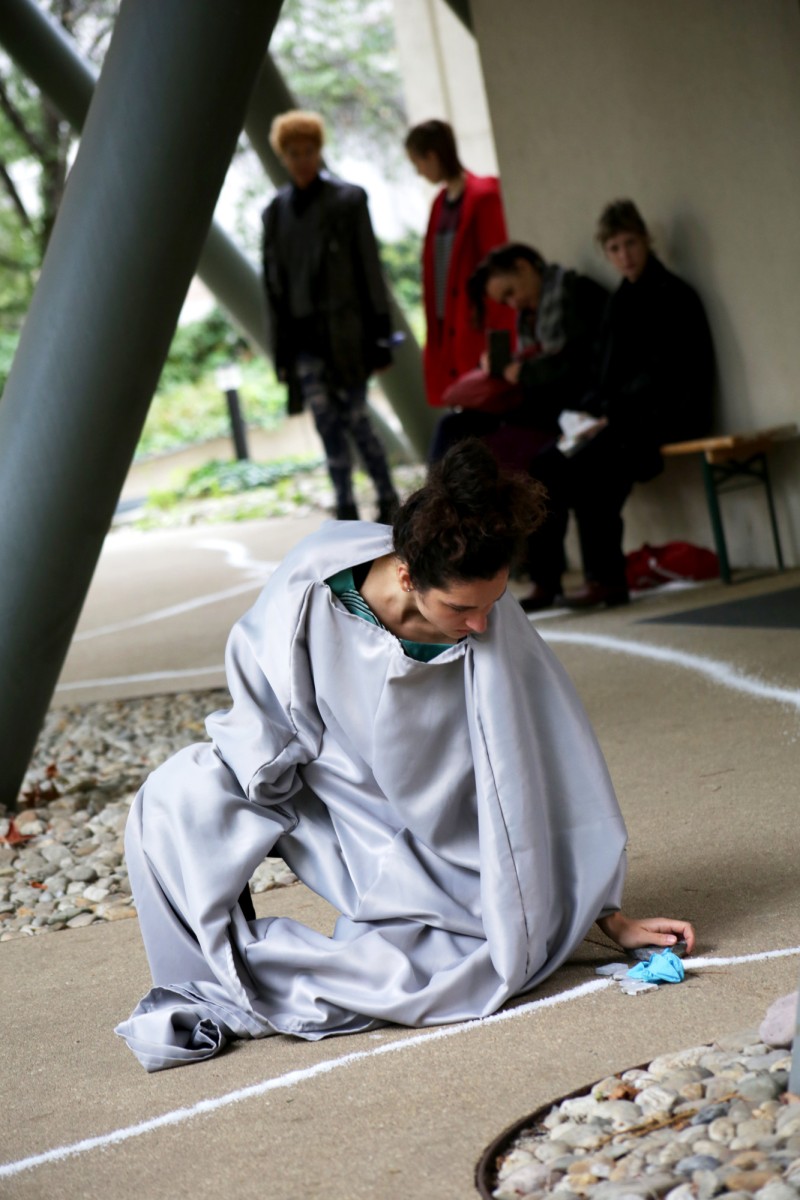 Ohne die Handlungsfähigkeiten von Wasser, Steinen, Bienen, Bäumen und Vögeln gäbe es nichts zu tun. Menschen tragen Steine, aber Steine tragen Gewicht. Welche Steine, wessen Steine, von wem bewegt? Und, in wessen Lungen landen sie als Staubablagerungen, mit Schleim vermengt? Vögel, Insekten und Bäume bewerkstelligen die Aufforstung, nachdem die Erde umgegraben und ausgebeutet wurde. Wie werden die mehr-als-menschlichen Lebewesen in den ausgebeuteten Landschaften zusammenkommen?