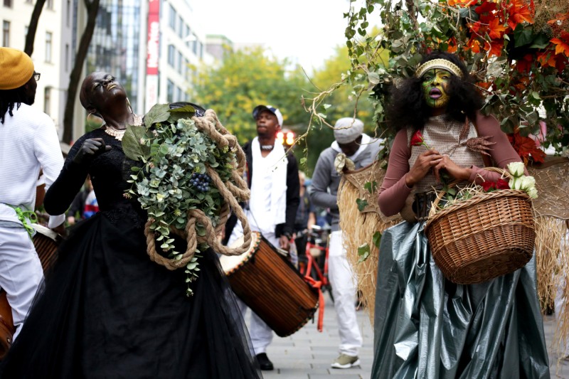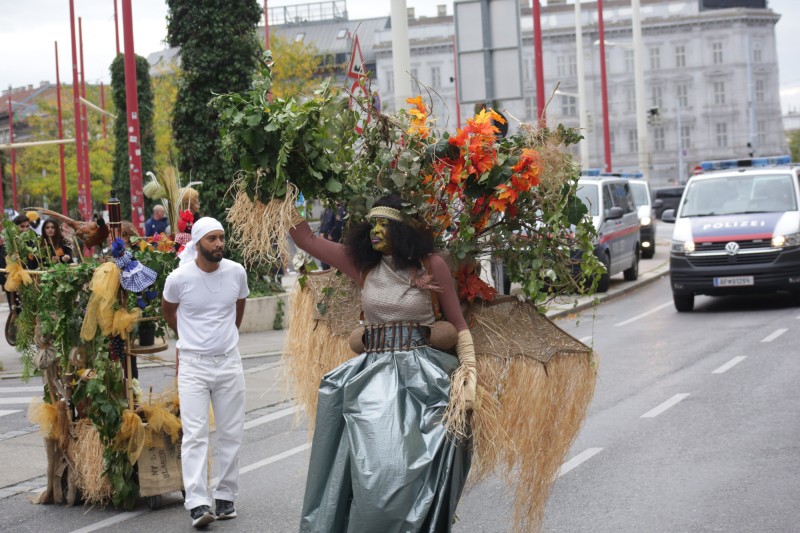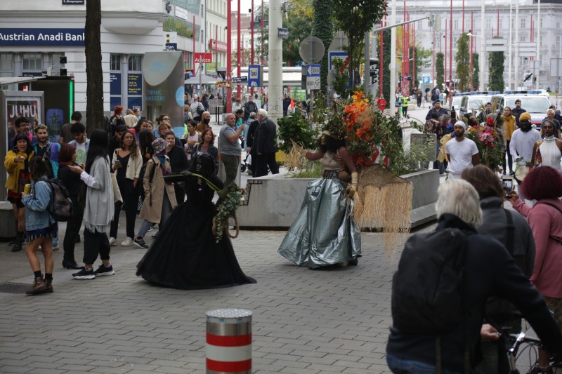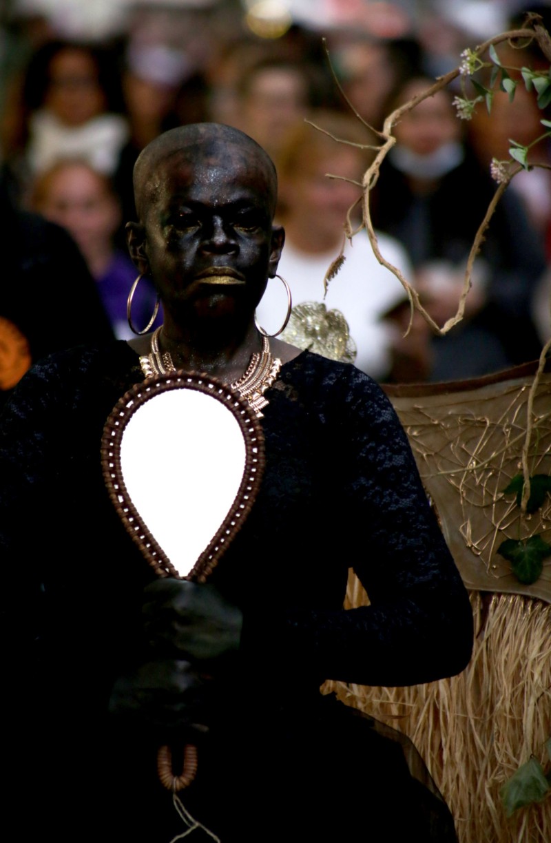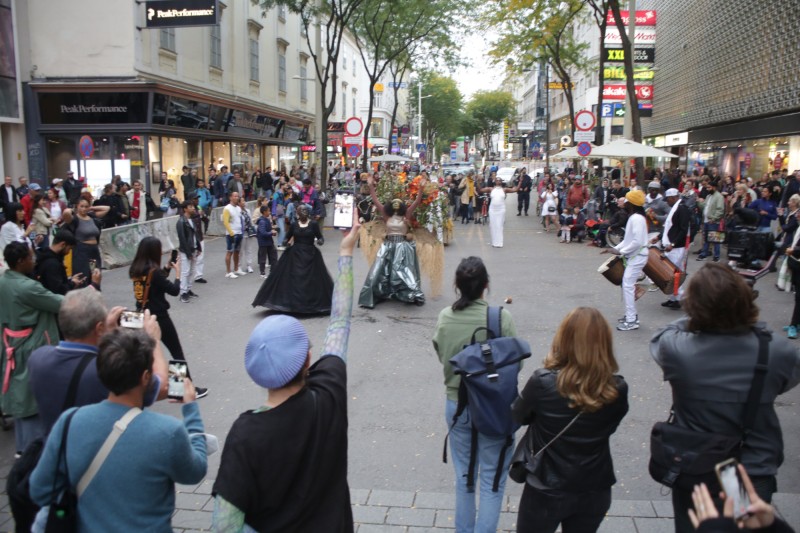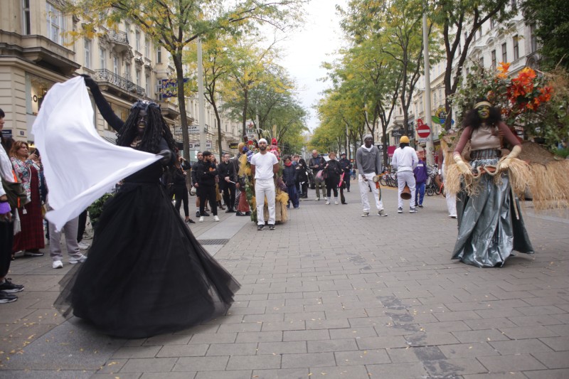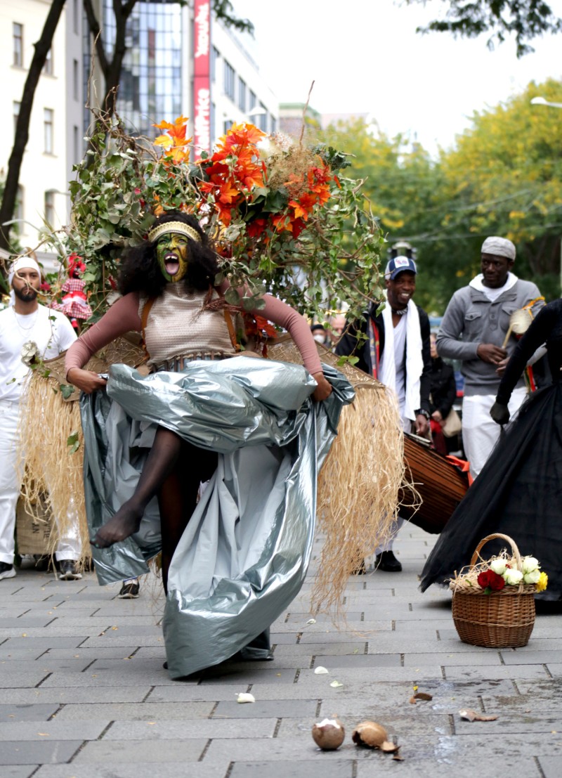 Alessandra do Santos Silva und Vivian Crespo Zurita werden im Rahmen einer wandernden Performance ein rituelles Manifest im Kontext kollektiver Selbstfürsorge präsentieren, in dem es um die Überschreitungen des westlichen Verständnis von Geschichte und Gegenwart, und der Anrufung unseres eigenen Schutzes geht, wobei Kosmovisionen der Afrikanischen Diaspora aus den Amerikas und der Karibik betätigt werden.