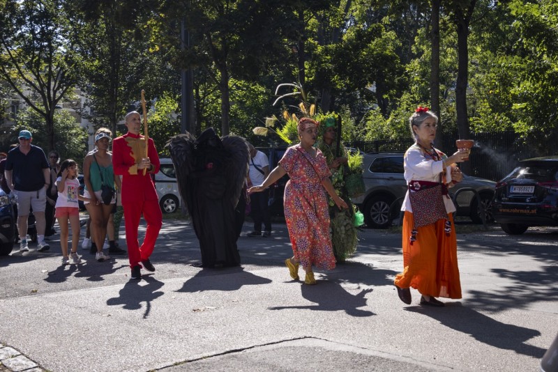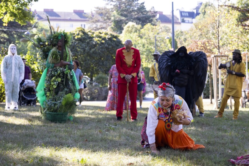 Un ritual de sanación performativo con la intención de destacar el pasado colonial de Austria y crear conciencia sobre la práctica de exhibir seres humanos en zoológicos humanos. El Zoológico Humano de Viena tuvo lugar a fines del siglo XIX en los terrenos del T(h)iergarten en el Wiener Prater.