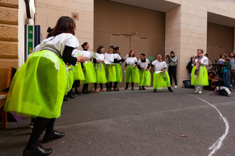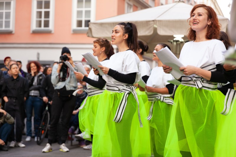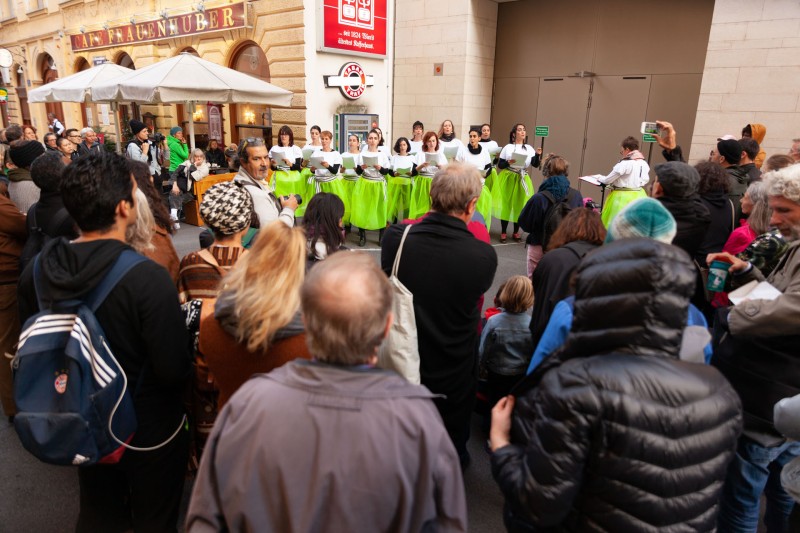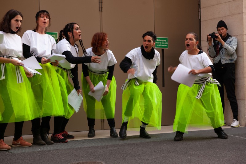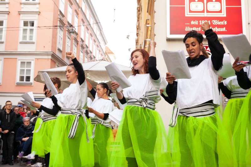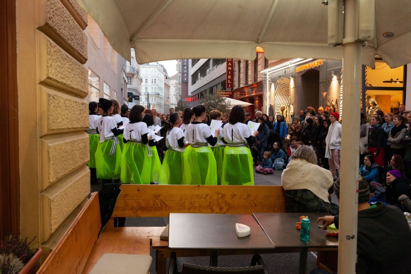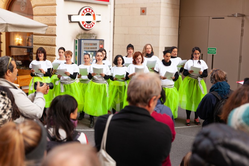 Ein 13-köpfiger Frauen*chor ist hier rebellischer Körper, scharfzüngige Kommentatorin und widerständige Instanz. Erzählt wird die Geschichte der Unterdrückung von weiblichen* Subjekten in Europa und ihre Notwendigkeit für die gewaltsame Durchsetzung des Kapitalismus. Ausgehend von „Caliban und die Hexe“ von Silvia Federici verhandelt das chorische Mahnecho die Geschichte der Ausbeutung und Enteignung weiblicher* und kolonialisierter Körper und den darin verwurzelten Schulterschluss von Kapitalismus und Patriarchat aus feministischer, antirassistischer und antikolonialer Perspektive. Aufführungsort ist die Rauhensteingasse/Ecke Himmelpfortgasse im ersten Bezirk, wo im September 1583 Elisabeth Plainacher, das einzige dokumentierte Opfer der Hexenverfolgung in Wien, im Keller des Malefizspitzbubenhauses gefoltert wurde, bevor man sie lebendig auf dem Scheiterhaufen verbrannte. OPUS MALEFICARUM ist ein wütendes, lautes Chorwerk, in dem sich Chants und Songs zu einer polyphonen Anklage der bis in die Gegenwart wirkenden, strukturellen Kontinuitäten interdependenter Gewaltverhältnisse vermengen.