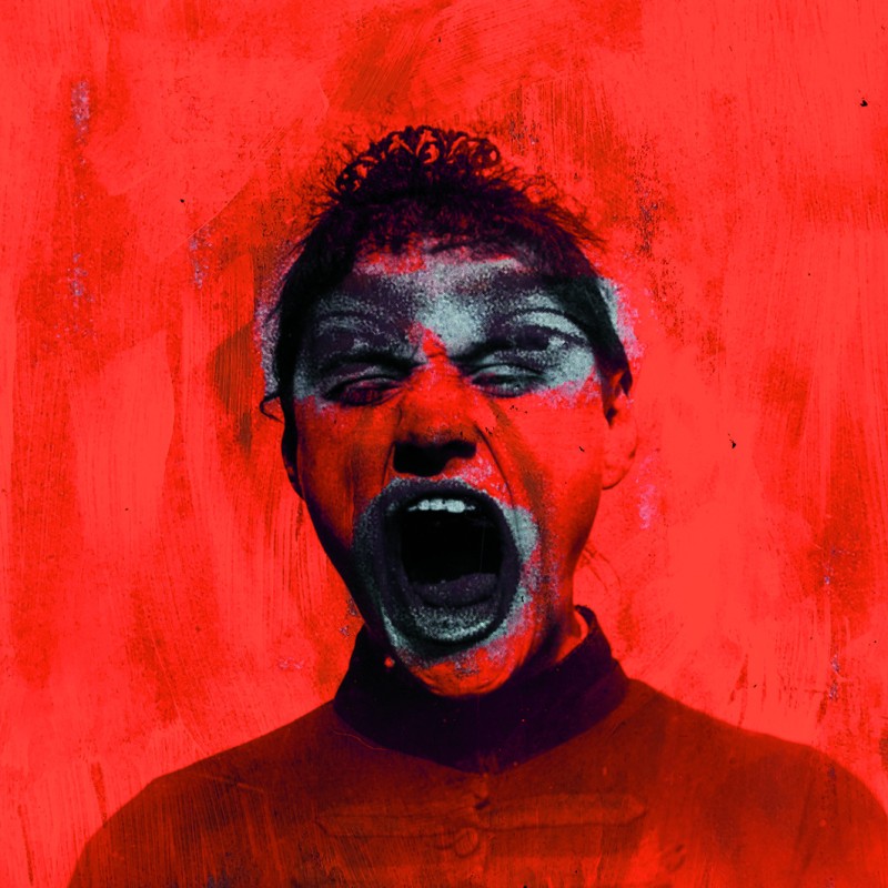 Übermalte Fotografie, die einen vermeintlichen Hysterieanfall zeigt Albert Londe, Salpêtrière Hospital 1892, Übermalung: Elke Auer, 2019.