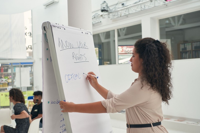 Was kann ich tun, wenn ich in eine rassistische Polizeikontrolle gerate? Was sind meine Rechte? Was mache ich, wenn ich abgeschoben werde? Wie kann ich Personen, die von Abschiebung betroffen sind, unterstützen? Wie setze ich meine Privilegien ein, um bei rassistischen Auseinandersetzungen zu intervenieren?