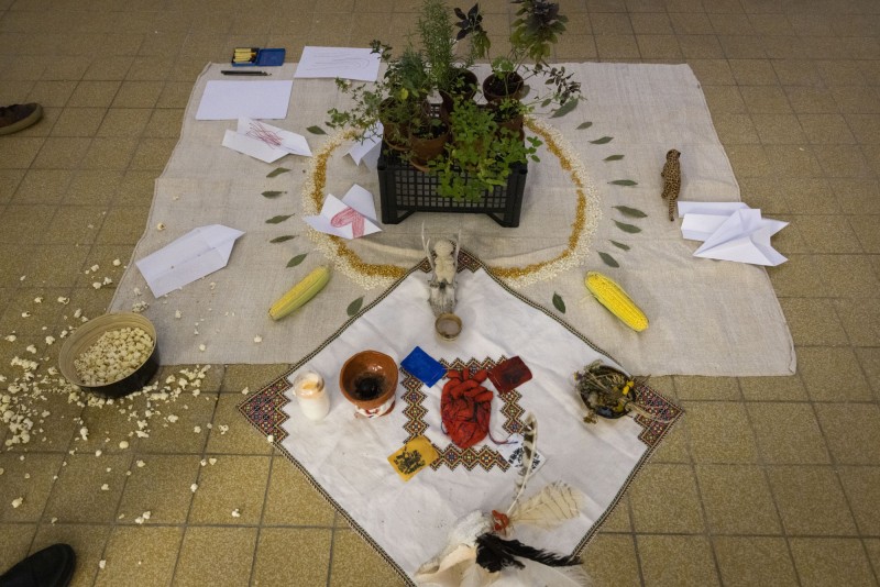 "Motherhood in the Art World" beabsichtigt, eine Brücke zu den Bedingungen migrantischer Mutterschaft und damit zwischen Kunst und Aktivismus zu schlagen und sie als Räume zu verbinden, in denen der Kampf ums Dasein stattfindet. Eine kollektive Performance wird stattfinden, die als eine Übung zur Thematisierung der reproduktiven Arbeit und der Politik der Sichtbarkeit konzipiert wurde. Aus der Perspektive der Körperpolitik wird dieser Versammlungsraum hauptsächlich, aber nicht ausschließlich, der Latina-Community angeboten. Hier wird die Stimme mit Müttern mit Migrationshintergrund geteilt, die dem Impuls des Austauschs und der kollektiven Heilung folgen. Unser Vorschlag ist eine Einladung, die "Vergemeinschaftung" der Epistemologien der Vorfahren neu zu überdenken.
