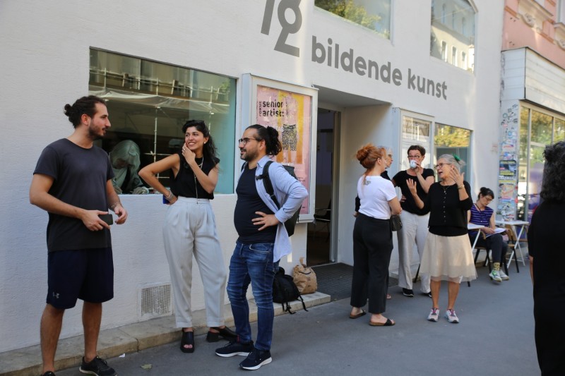 Artists: Veronika Hösch, Ahoo Maher, Zehra Baraçkılıç, Rini Swarnaly Mitra, Johanna Kirsch, Artistic statements: invited senior members of IG Bildende Kunst/participants from Discoursive Breakfast, Romana Hagyo, Andrea Lumplecker